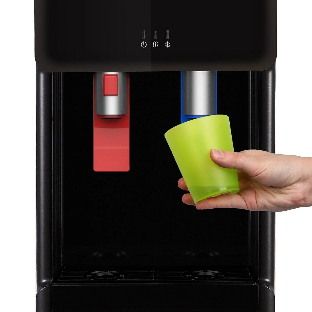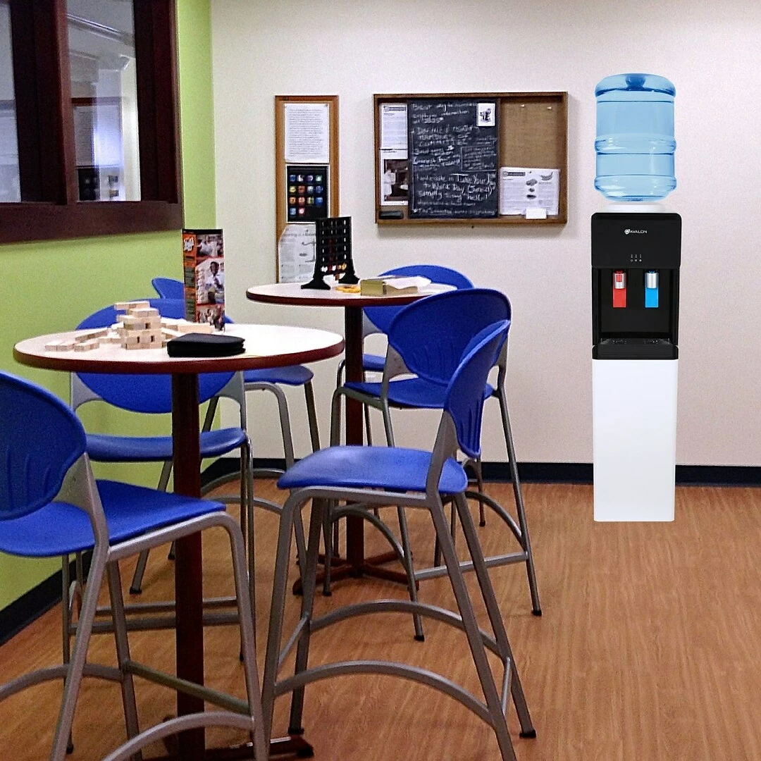 The Avalon Hot/Cold Water Cooler makes the cold-water crisp and ice cold at approximately 47° F without the need of adding ice cubes to your drink. The hot faucet is hot enough to cook one’s tea or coffee or any other steaming hot beverage at approximately 185° F. Due to the extremely hot water, we’ve added a child safety lock on the hot water faucet.