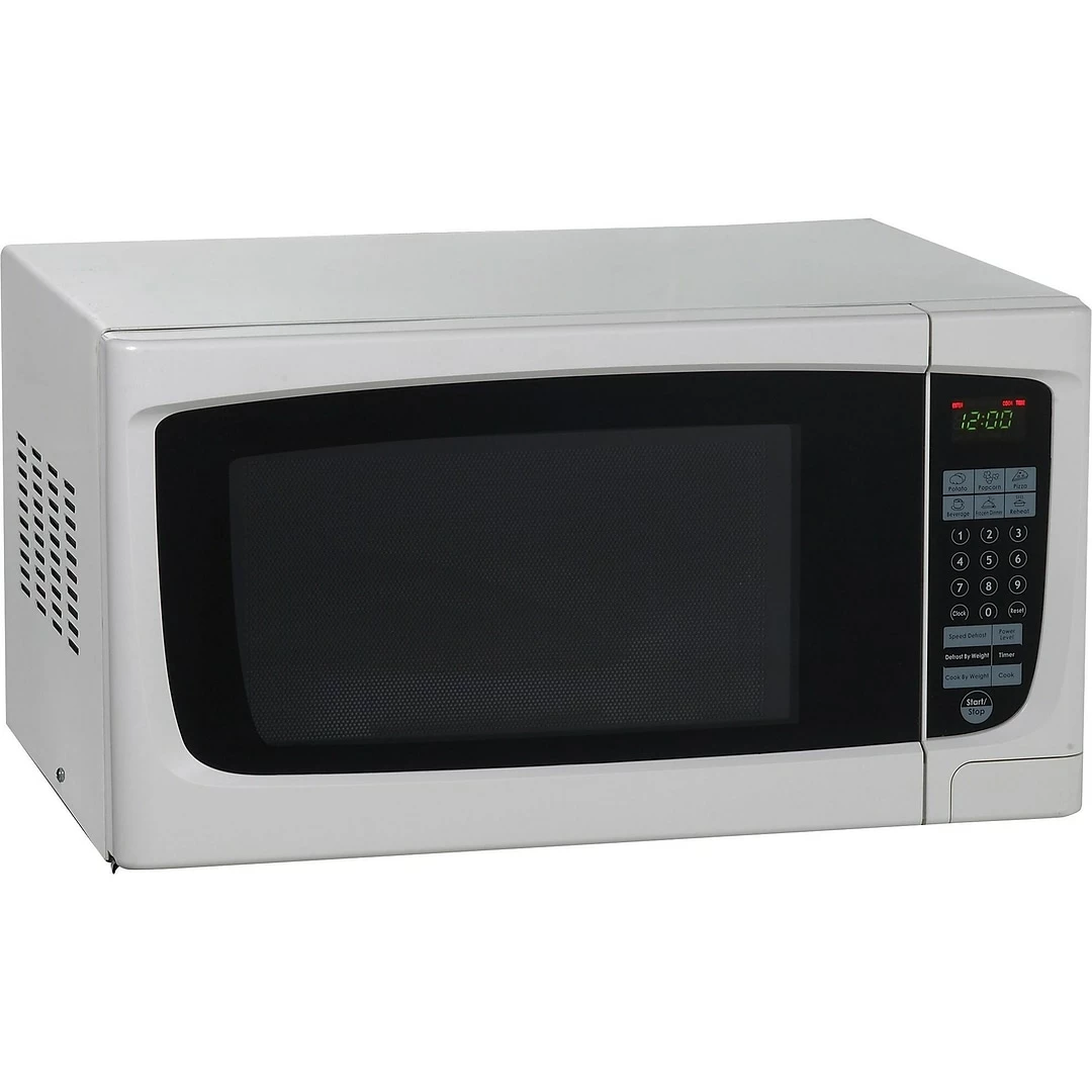 Cook, defrost, and reheat your food with this 1.4-cubic-foot white microwave oven. Ten power levels provide cooking versatility and expanded options while nine auto-cook programs allow for easy one-button cooking without the guesswork for foods like popcorn, potatoes, and pizza. The 1.4-cubic-foot interior means plenty of space to cook, while the cook and defrost by weight feature allows for hassle-free and thorough heating and the speed defrost setting cuts the wait time for frozen foods. A removable turntable makes cleaning simple and quick. Use the kitchen timer for added utility and convenience. This Avanti white microwave oven has 1000 watts of power to handle even intensive cooking tasks such as cakes and entire meals.