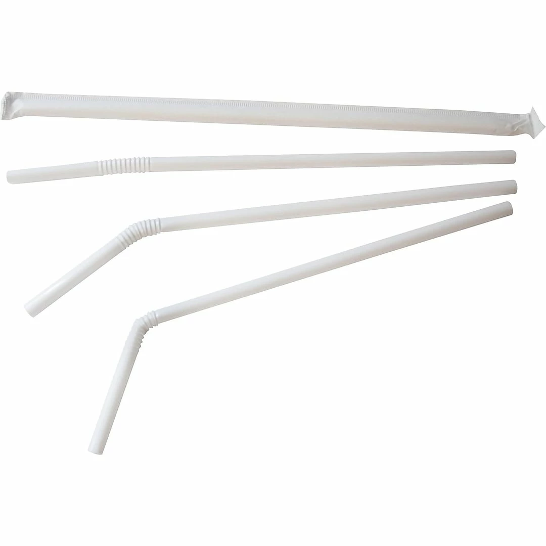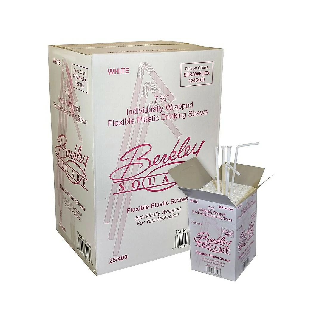 Streamline drinking with these wrapped jumbo flex straws. The sturdy design and flexible angle make these straws ideal for arts-and-crafts projects. This case of 10000 Berkley Square jumbo white flex straws provides plenty for high-volume dining or crafting needs.