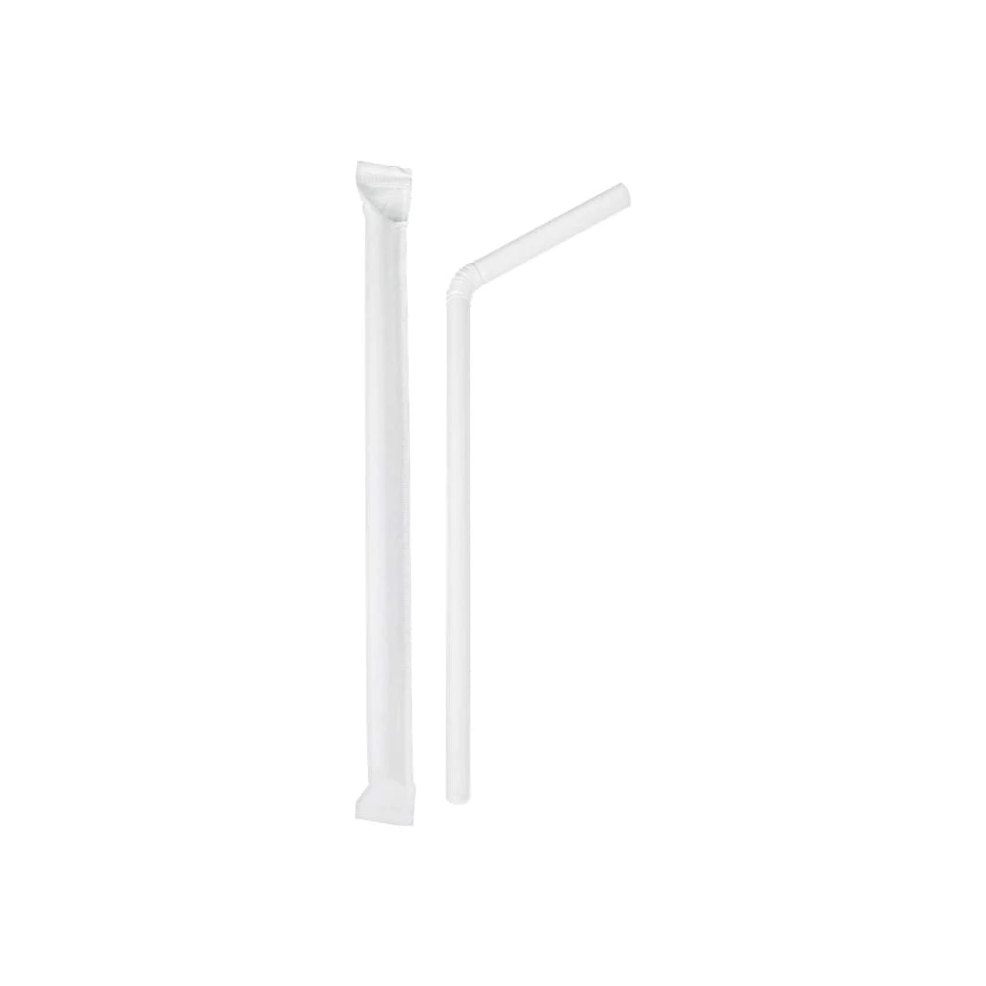 Stock restaurants, cafeterias and other venues with these Berkley Square jumbo white wrapped flex straws.