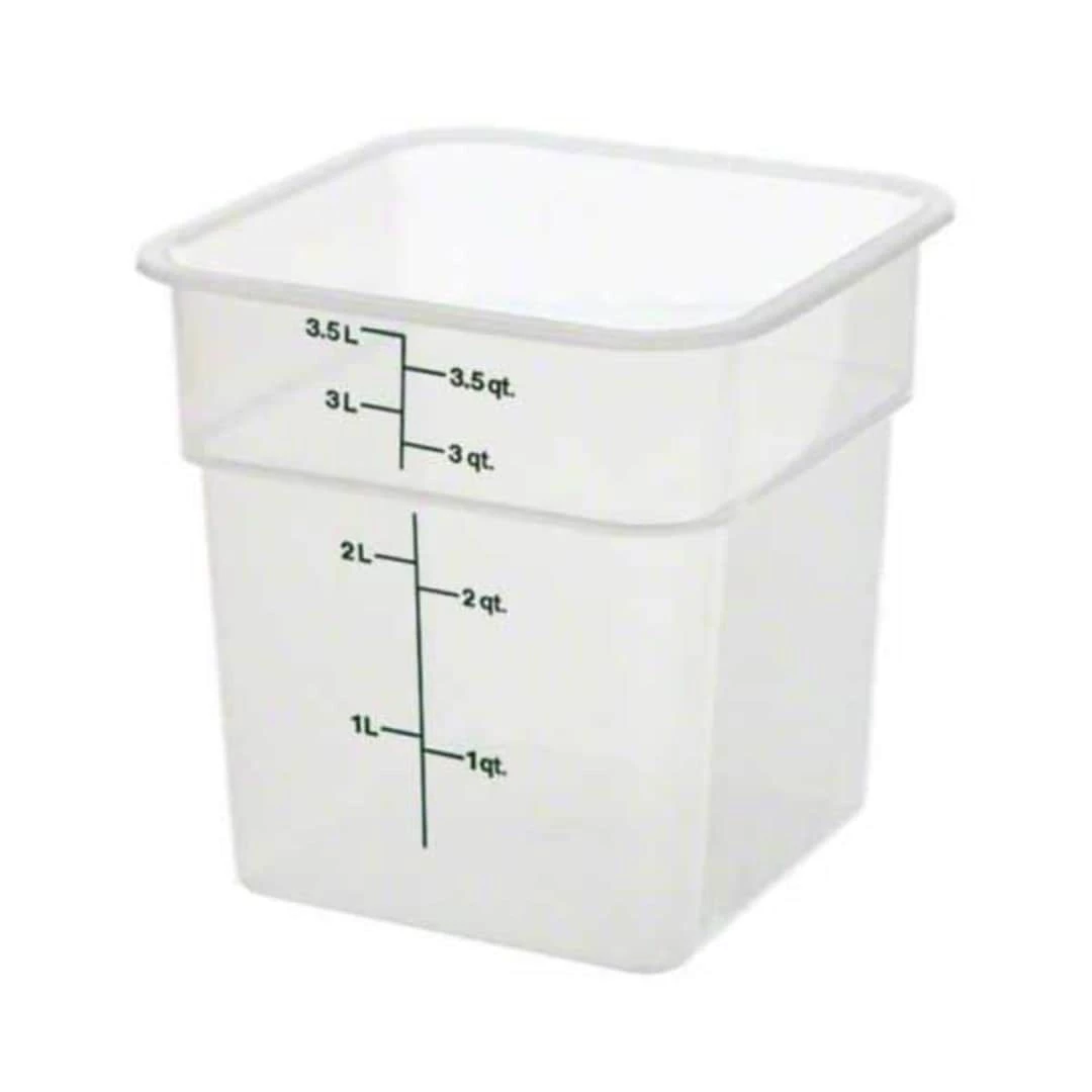 Cambro® CamSquare® Food storage container in clear color is made of polypropylene for durability and has a capacity of 4 qt to store products. Container measuring 7 7/8″ x 7 1/4″ withstands temperature of range -40 to 160 deg F.