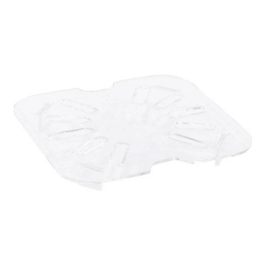 Drains shelves are ideal for food pans in buffets and or for draining after preparation. Designed to accommodate camwear food pans this Cambro camwear drain shelf fits 1/6 size food pans. This 1/6 size drain shelf allows the moisture from your foods to be pulled below the shelf, keeping your foods from getting soggy and sloppy. Ideal for use with vegetables, fruits, and pasta. This drain shelf fits a 1/6 size pan and has a measurement of 7″ x 7″. This sixth size drain shelf in clear in color to allow you to see the moisture below the food to check the volume for draining. This food pan drain shelf is also highly resistant to dents, scratches, corrosion, and discoloration so that you can use it over and over again with a variety of different foods. Add this 1/6 size drain shelf to your Cambro food pans today!