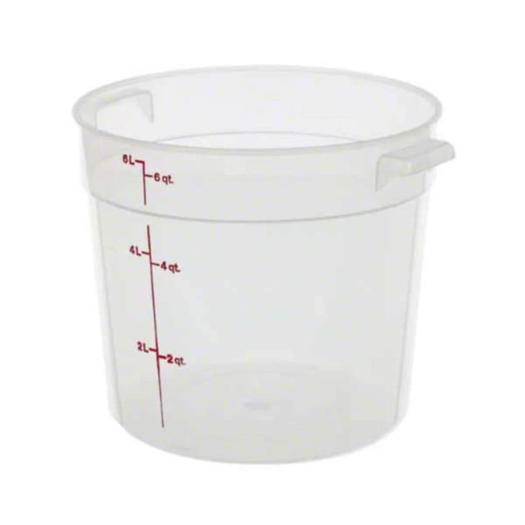Cambro® Food storage container in clear color is made of polypropylene for durability and has a capacity of 6 qt to store kitchen essentials. Container with 10″ Dia has a height of 7 3/4″ and can withstand temperatures of range -40 – 160 deg F.
