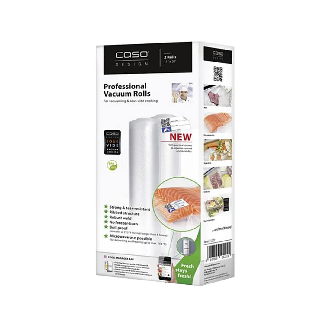 The Caso Design premium quality reusable vacuum roll has a ribbed structure for added strength and durability and produces a consistently superior vacuum seal. Material is heat- and tear-resistant and can be boiled, used in a microwave, and is great for sous vide cooking. Pack contains two rolls. Roll thickness is 5.9 mil, which is approximately 50% thicker than that of competitors.
