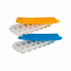 Make perfect ice every time with this set of two Chef Buddy ice trays with lids. Each tray holds 14 cubes of frozen food or liquid that release quickly with a twist of the tray. This set of two Chef Buddy ice trays features convenient lids that seal in freshness and keep out freezer particles and odors.