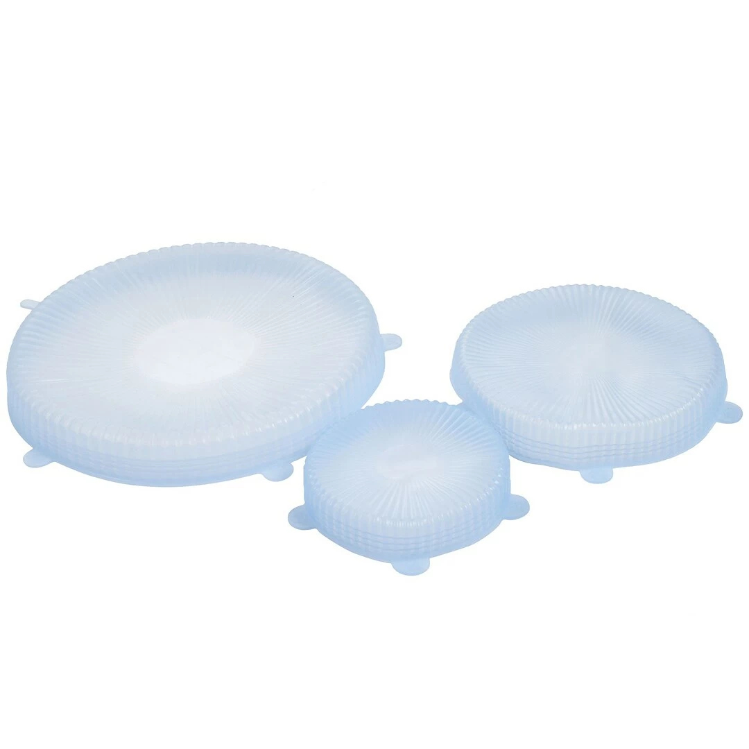 Chef Buddy Small Medium and Large Silicone Food Cover goes with metal, glass and plastic bowls. It features pull tabs that make it easy to remove and put on and fits most round bowls while ensuring your food stays fresh by creating an air tight seal.