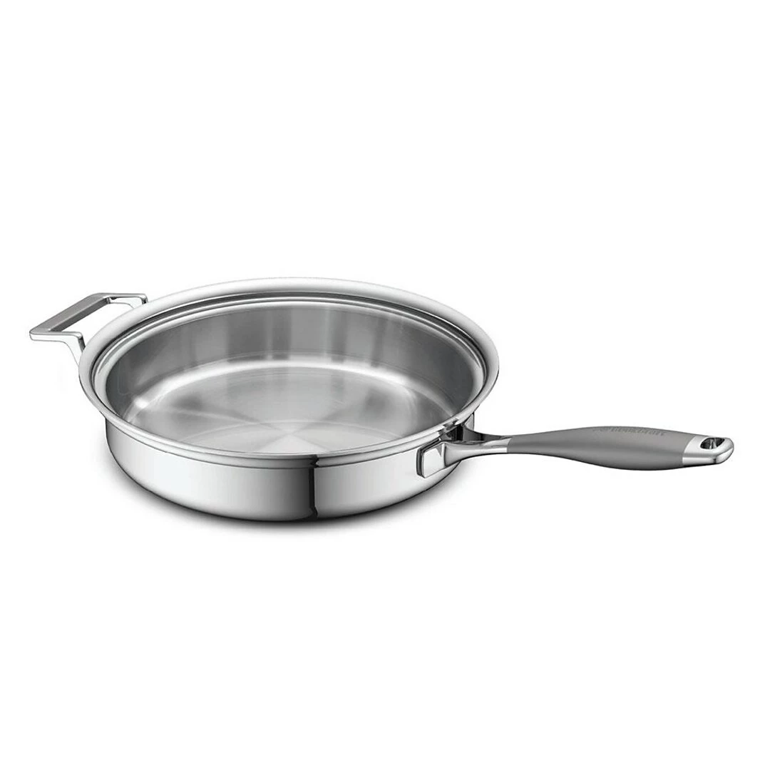 Tri-ply stainless steel construction with an aluminum core and silicone handles