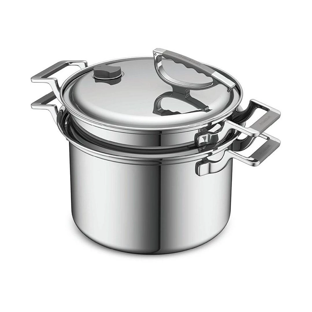 8-quart saucepan and strainer set with a latch lid for pasta, soup, sauce, and more
