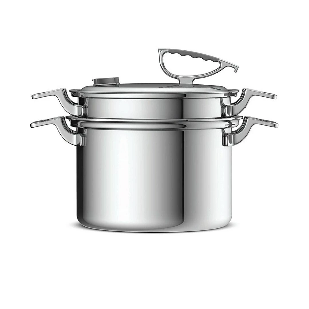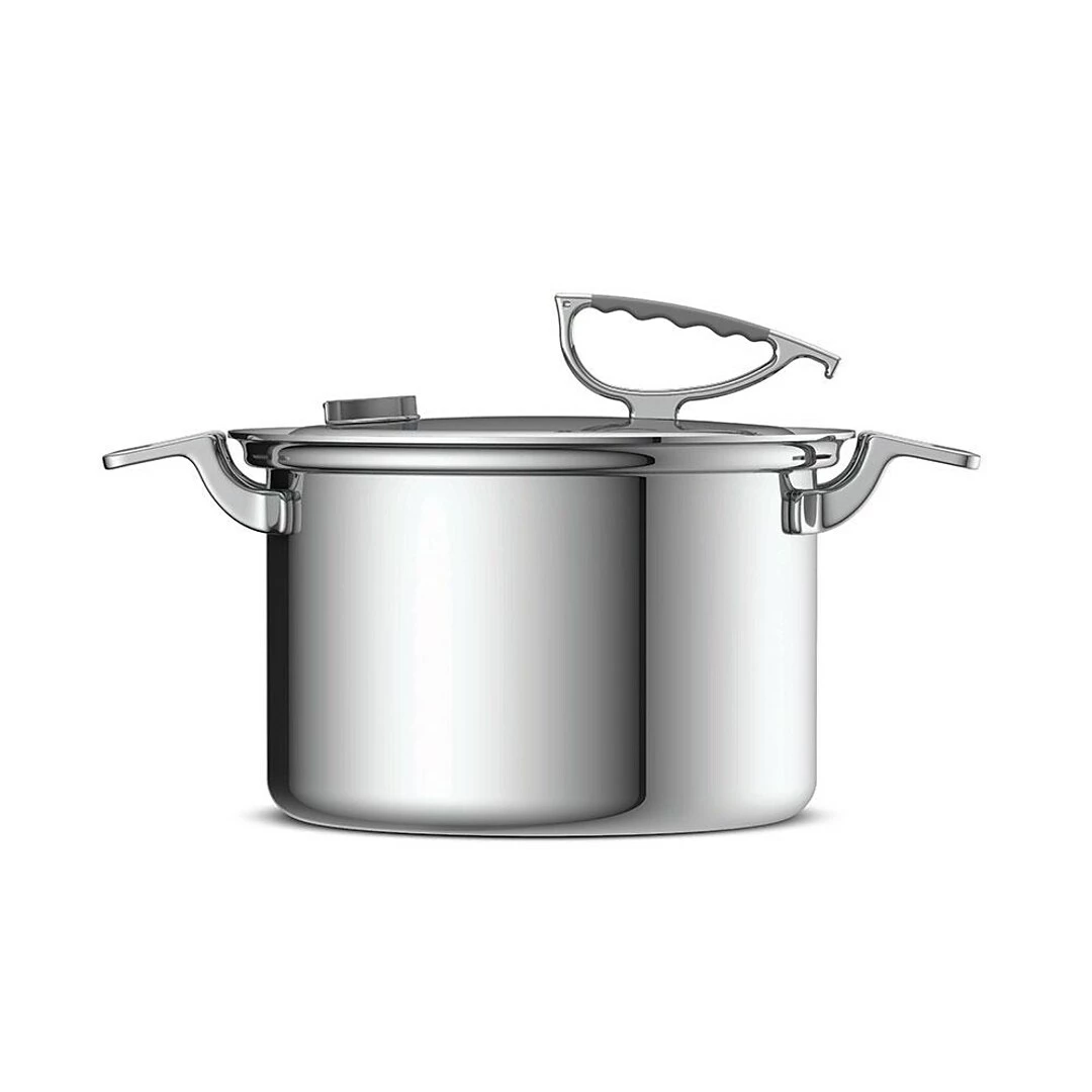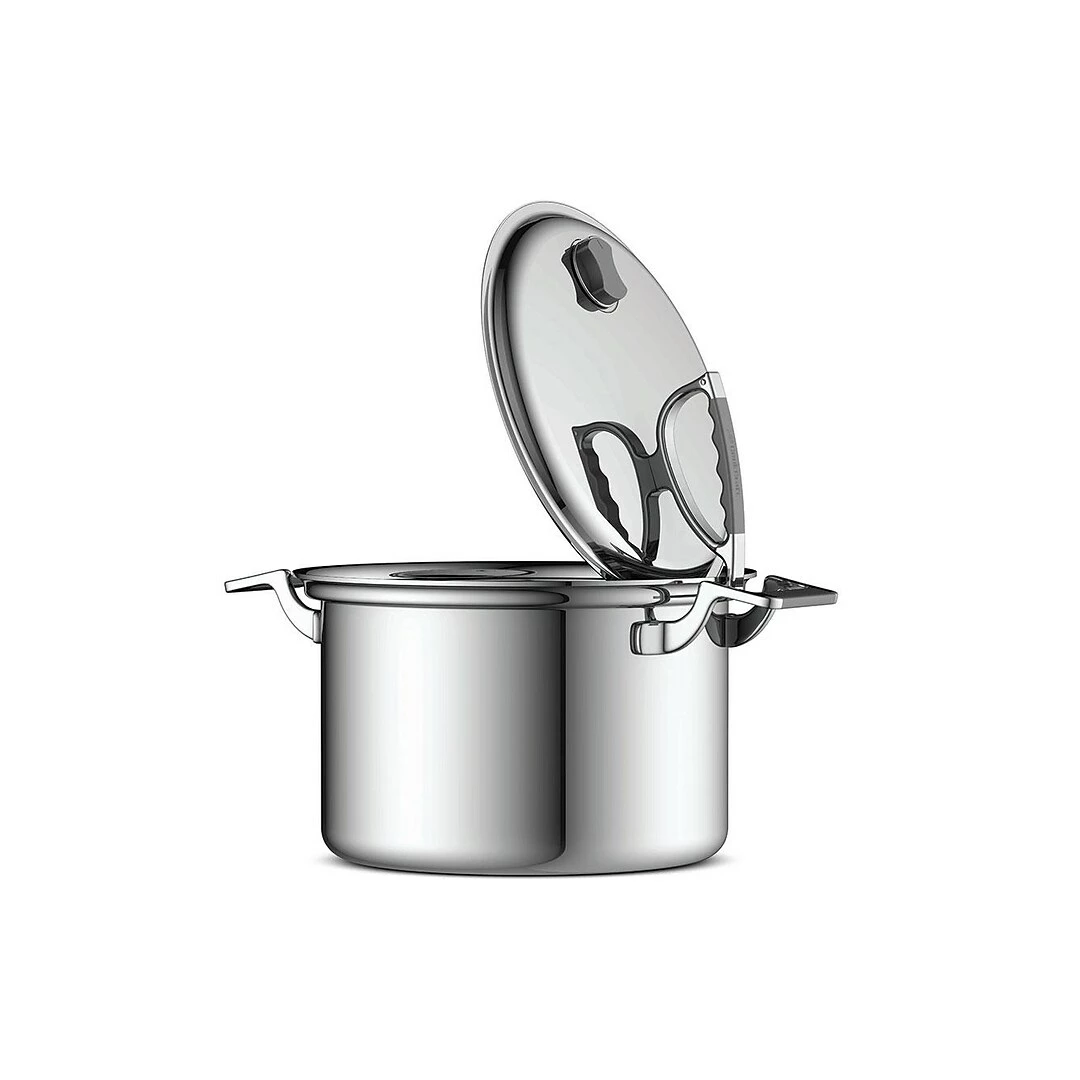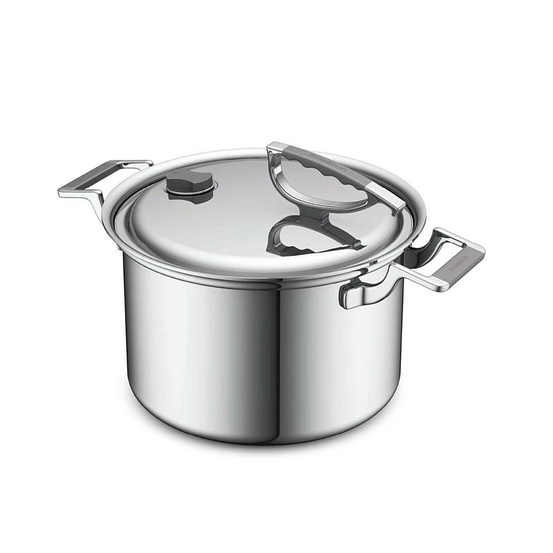 Tri-ply stainless steel construction with an aluminum core and silicone handles