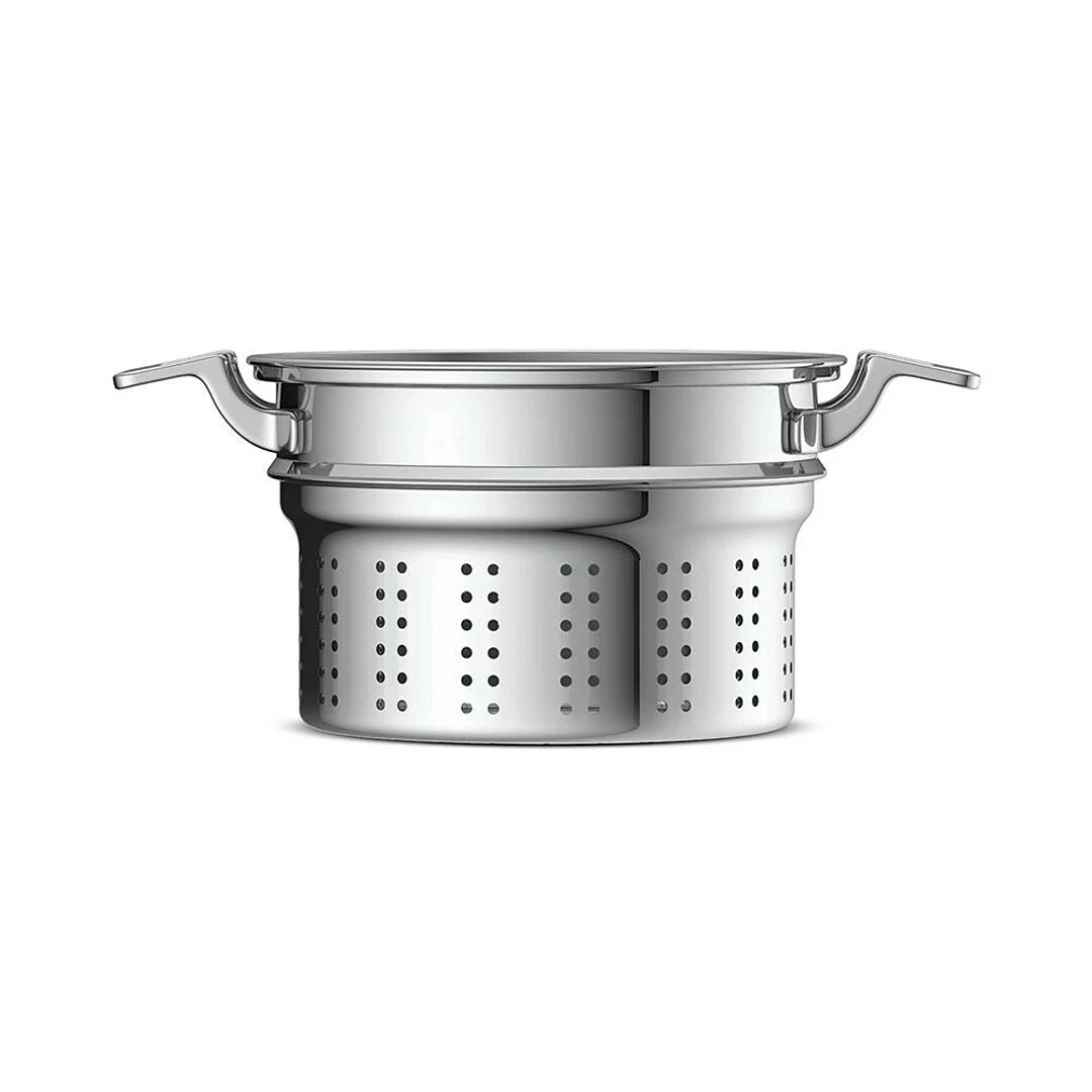 The set includes a saucepan and a strainer