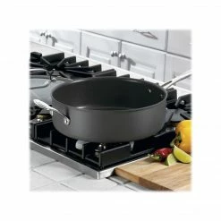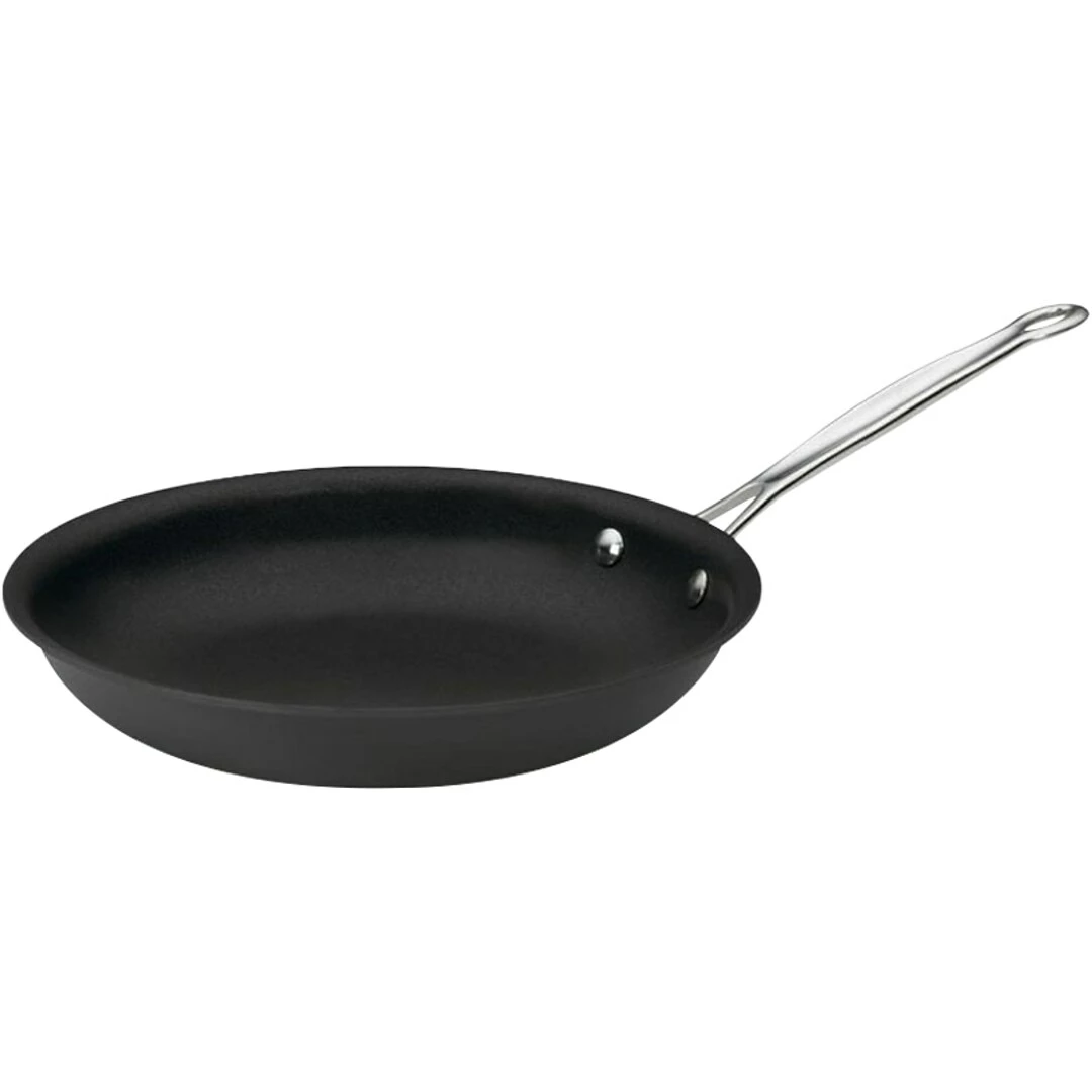 The Cuisinart Chef’s Classic nonstick hard-anodized skillet has sloped sides and a wide flat bottom for frying fish, sautéing onions and garlic, or browning big batches of chicken. The open design of the skillet maximizes the cooking surface and makes it easy to rearrange food as it is cooking. The long handle offers the perfect balance to provide exceptional control when gently tossing food. Cuisinart Chef’s Classic cookware features durable hard-anodized construction for fast and even heating.