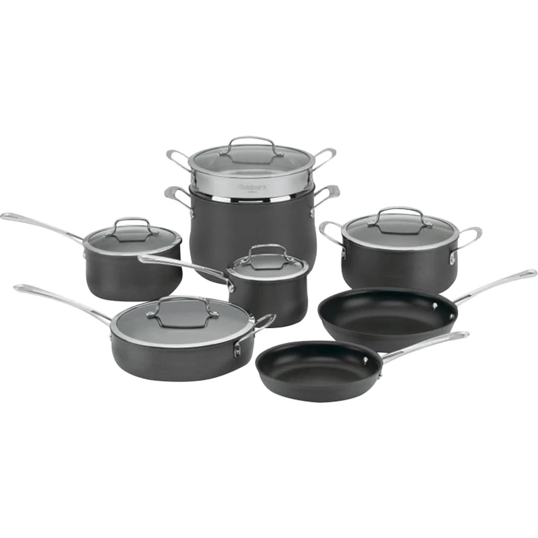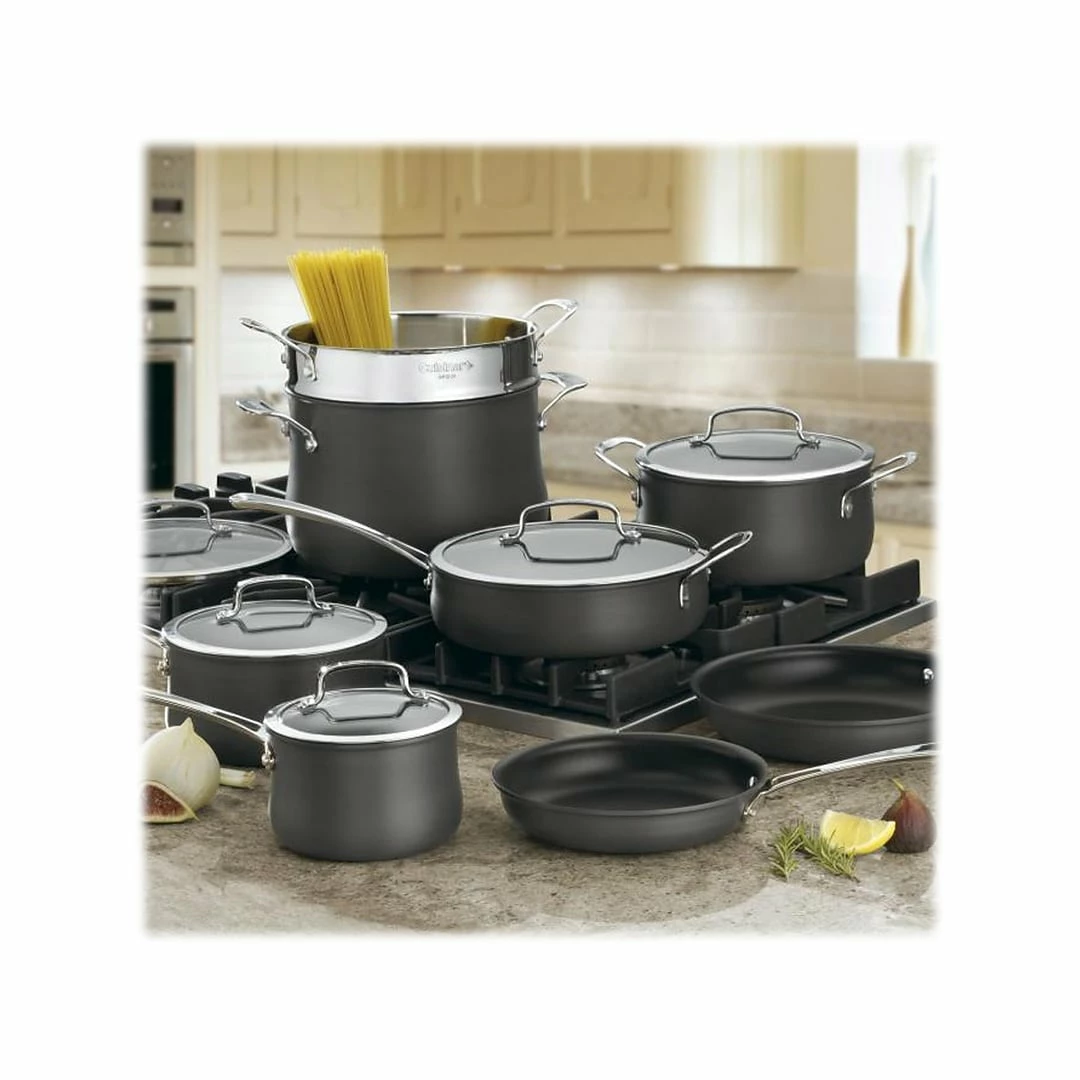 The Cuisinart Contour hard-anodized cookware set is premium cookware that features finest materials and is constructed for unsurpassed durability and performance. Beautiful and functional design, the elegant styling and a robust silhouette make for a professional look. Maximize the volume, and cook with added flair with this unique cookware.
