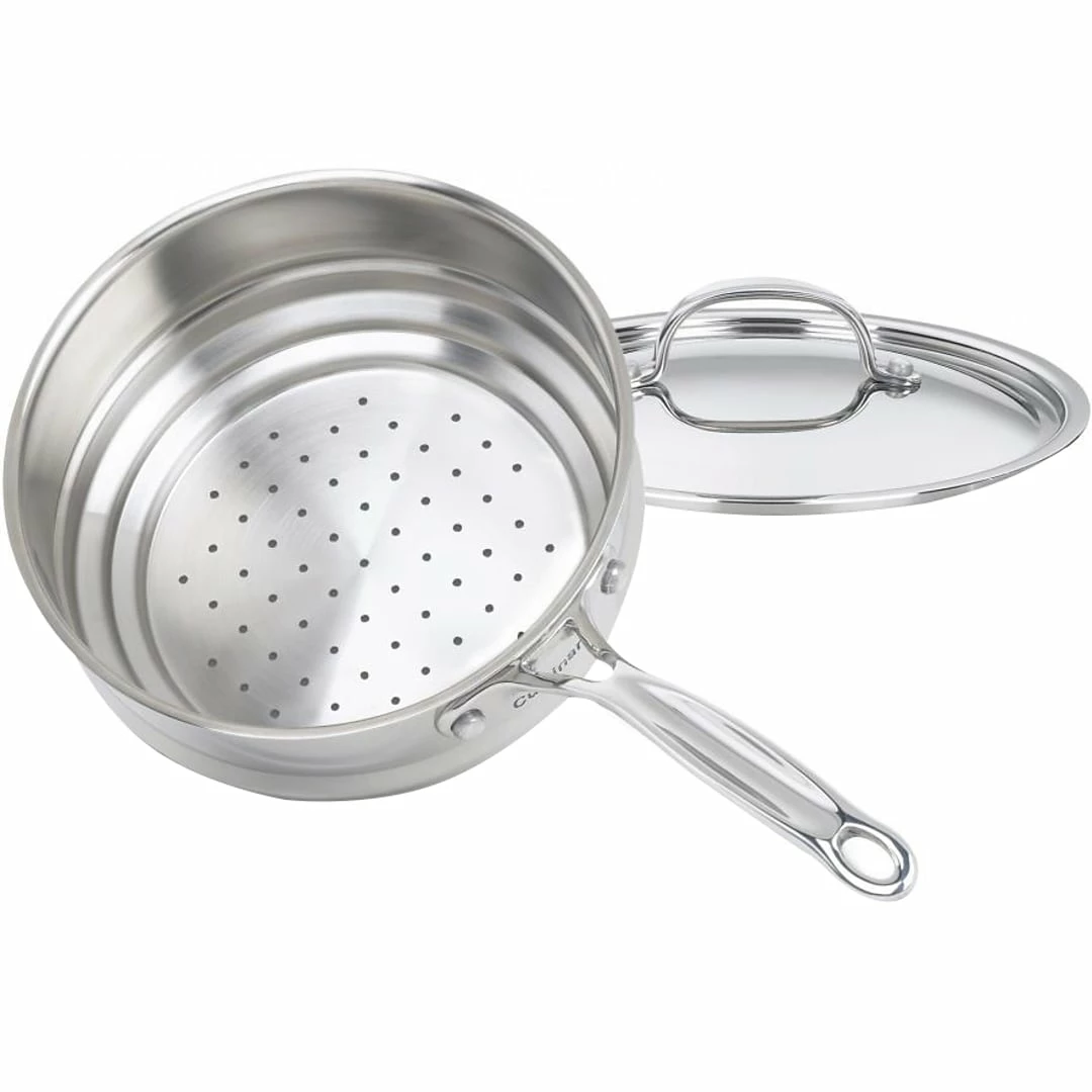 The Cuisinart universal 7.87″ steamer with a cover easily and conveniently turns 2, 3, and 4 quart saucepans into steamers for healthier, fresher tasting food. The tight lid helps produce retain vitamins and minerals for healthy cooking.