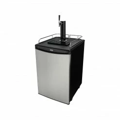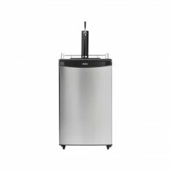 Whether you are a beer drinker or an avid entertainer, you will be the best party host with this ultimate indoor freestanding kegorator by Danby. The single-tap keg cooler is an exceptional addition to any wet bar, game room, or man cave, and it offers cold beer on tap. It uses environmentally friendly R600a refrigerant and features an automatic defrosting system, which makes for an excellent product with hassle-free maintenance. This keg cooler includes a single-gauge regulator, CO2 tank, and all required hardware. It features a precise mechanical thermostat to keep your beer cold and a spotless steel finish resembling stainless steel but much easier to clean. Furthermore, this unit includes an American Sankey coupler, a chrome guardrail, and drip tray. The door hinge is reversible, which allows you to adjust it for either left- or right-handed opening.