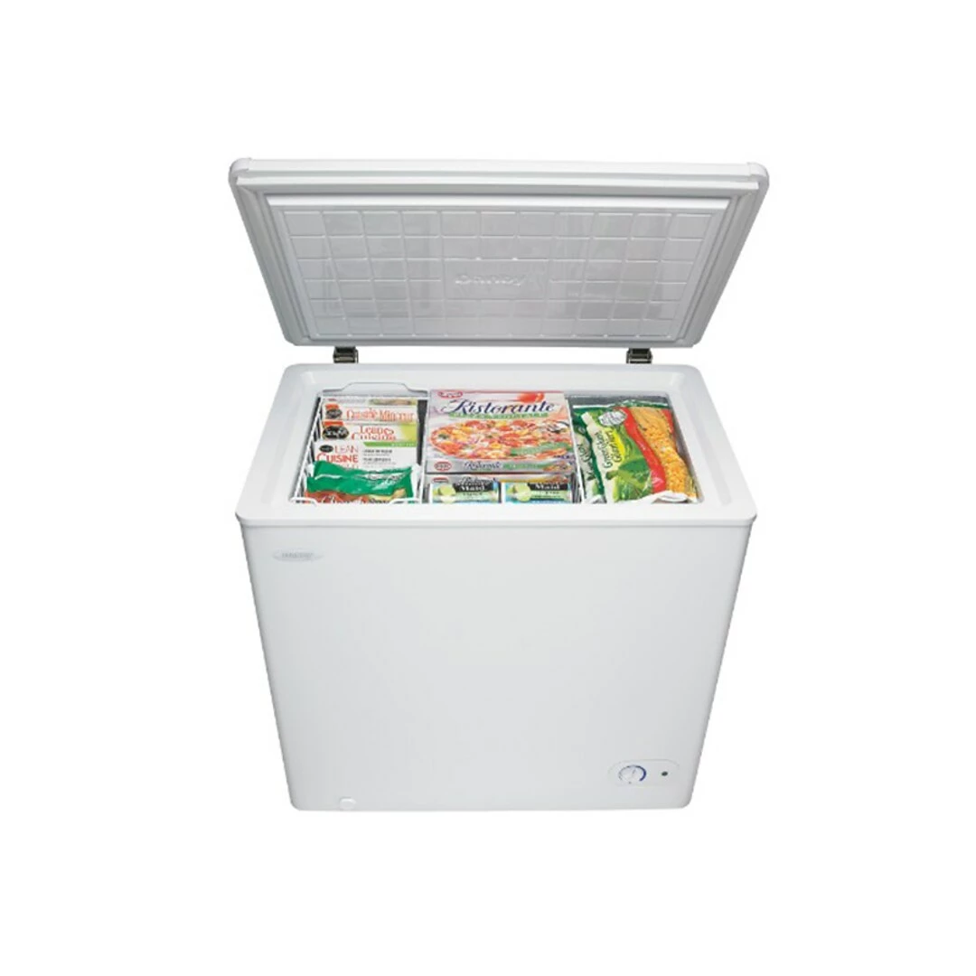 If you’re looking for a versatile and lightweight compact chest freezer, then look no more. This exceptional Danby model is designed to take up just a minimal amount of space. It’s the ideal unit for homes, offices, apartments, condos, and cottages. The vinyl-coated basket allows you to separate your favorite and most-used food items while the interior liner has been specifically designed for easy cleaning. Your energy bills won’t shoot through the roof with this highly-efficient appliance as the cabinet and rounded lid are constructed with foam insulation to keep the cold in and the heat out. The modern mechanical thermostat can easily be set and monitored due to its front-mounted design, and the convenient defrost drain makes maintenance a breeze.