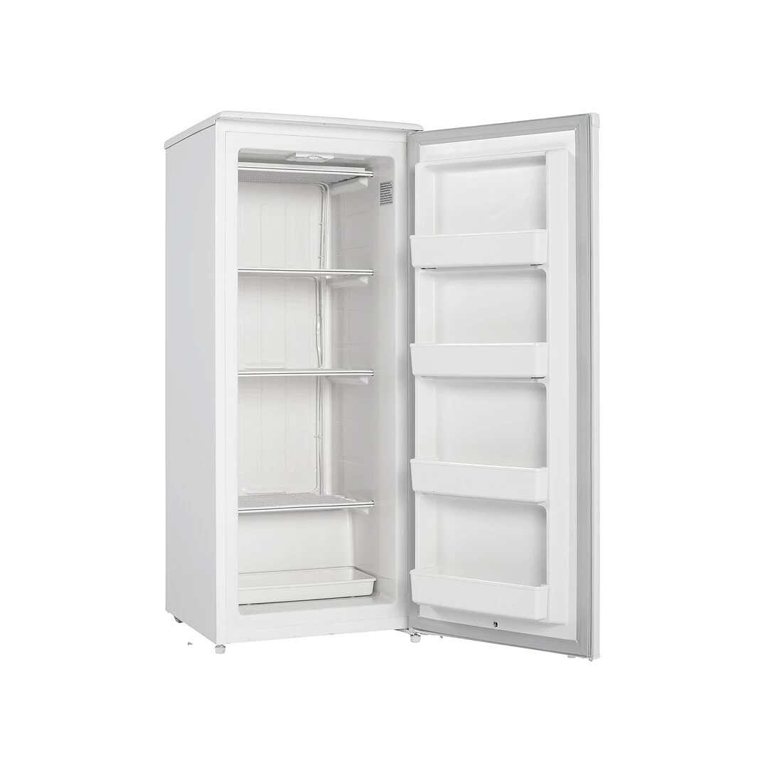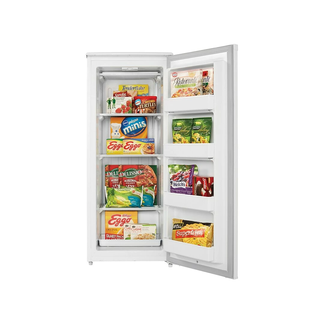 When it comes to storage space for your family’s favorite frozen food items, size really can matter. This is why the Danby Designer DUFM101A2WDD upright freezer is perfect for those households with plenty of mouths to feed. This chic unit is operated by a mechanical thermostat and comes with three strong and sturdy wire shelves as well as four roomy door shelves. The clever reversible door hinge means you can adjust the freezer for either left- or right-handed opening.