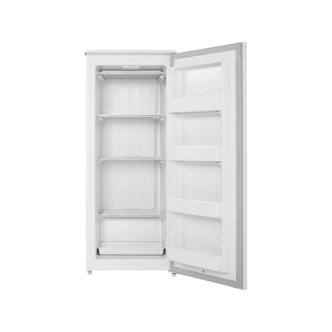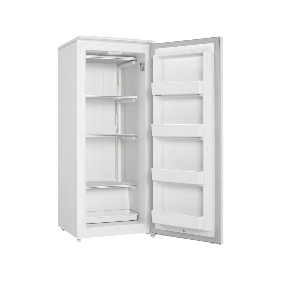 This modern upright freezer by Danby is ideal for all types of households and decors. There’s plenty of cooling area due to the four handy door shelves and three additional quick-freeze shelving units. The convenient manual-defrosting function makes it easy to maintain the freezer and keep it ice-free. The freezer also features an internal drip tray. The modern mechanical thermostat is a breeze to program and monitor while the scratch-resistant worktop is ideal for storing extra accessories.