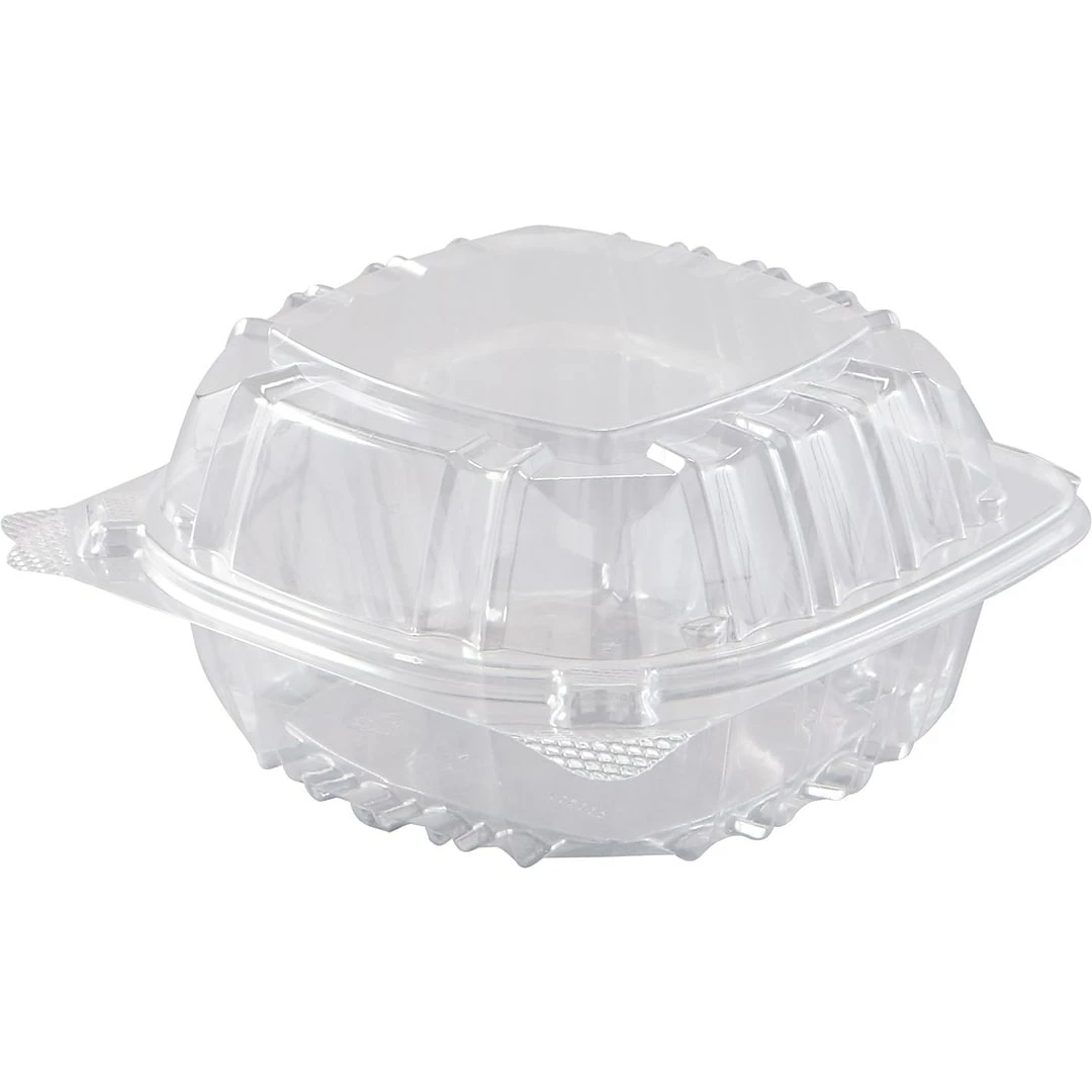 Dart ClearSeal Hinged lid container in clear color offers label window for product labeling and scanning of the right item. Container provides audible snap and excellent multiple closure with wide sidewall ribbing expands for open view of product.