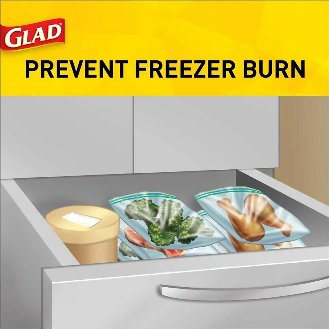 Glad Zipper Freezer Bags prevent freezer burn with extra thick and durable plastic and a zipper lock that securely close every time