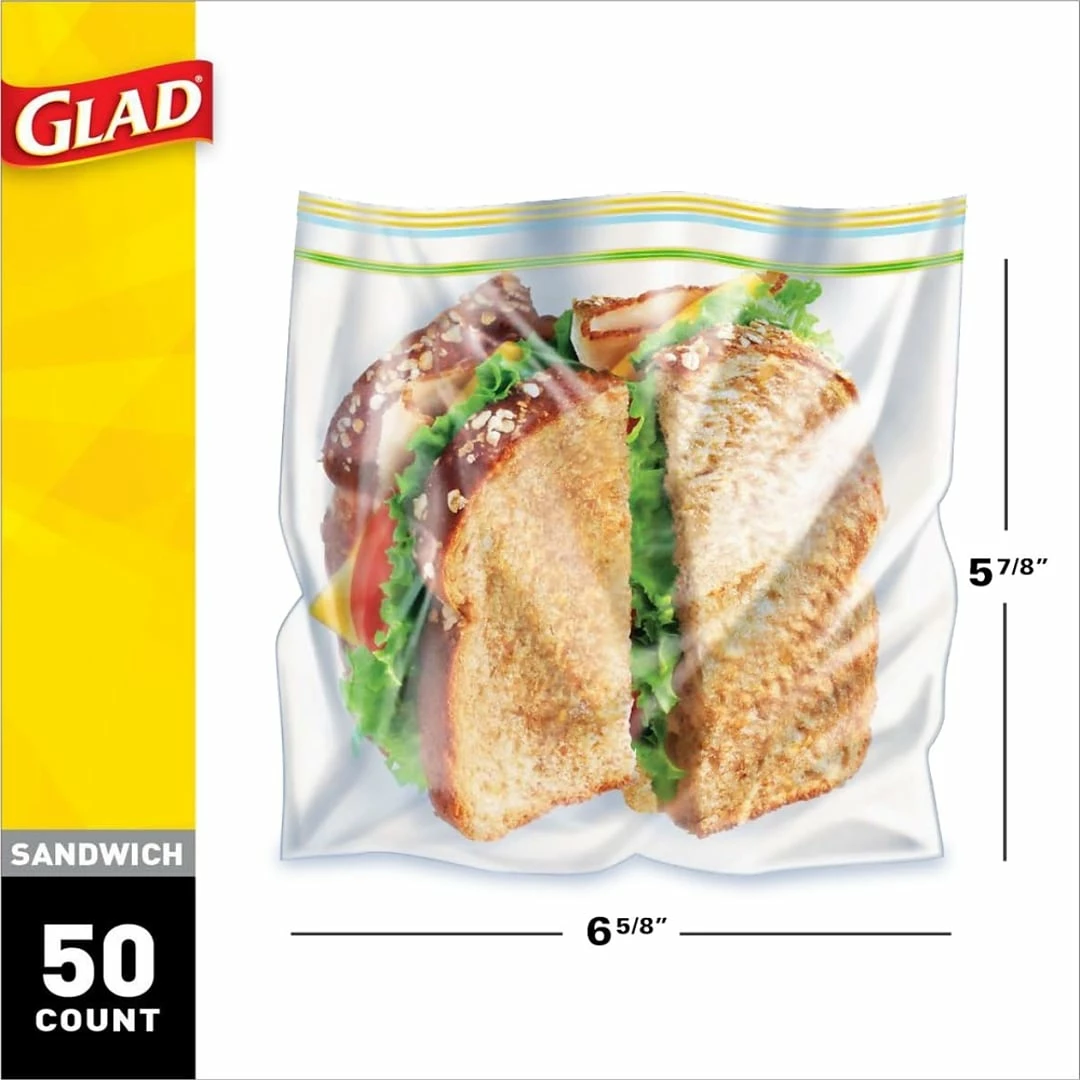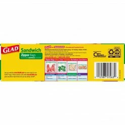 Glad Food Storage Sandwich Zipper Bags are ideal for taking small items on the go or preserving leftovers. These bags keep food fresh and safe. The double zipper seal is easy to open and close. With the Yellow and Blue Make Green seal, you know when the bag is fully closed. Glad Sandwich Zipper Bags can also be used for organizing small parts, storing or protecting small items. These bags are BPA free and microwave safe. Glad Sandwich Zipper Bags seal and secure with ease. Ideal for use in restaurants and other commercial facilities.