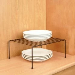 With it’s 2 tier design, you can store accessories on and under the rack. Dinnerware can be easily removed and placed back on rack thanks to the open design. Medium size design for medium sized plates, bowls and mugs.