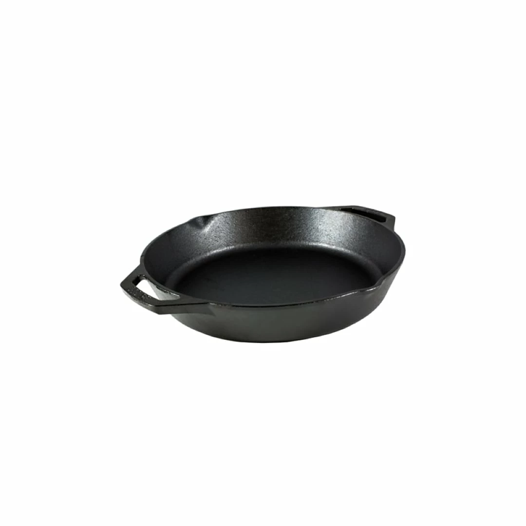 Meet our original classic skillet’s cousin. Crafted in America with iron and oil, it’s a kitchen staple with a dual handle design that makes it easy to lift, move, and store.
