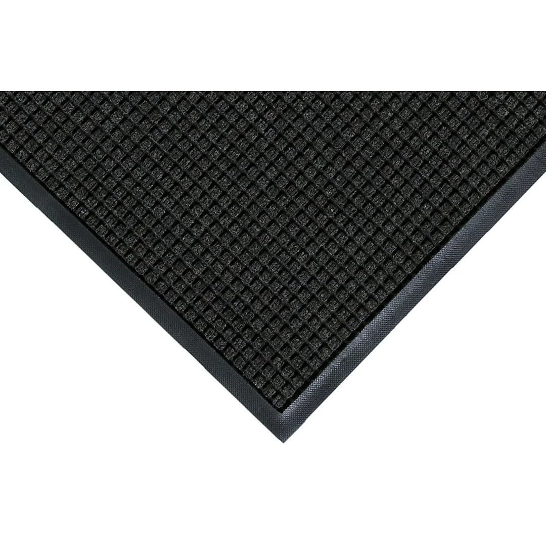 WaterHog mats are durable, stain-resistant mats with a unique bi-level design that traps dirt and moisture below foot level, keeping your floors clean, dry, and safe. The surface is made with solution-dyed fibers that dissipate water for quick drying and will not fade or rot. WaterHog mats are backed with durable rubber that will not crack or curl, ensuring your mat will lie flat and remain in place. The waffle pattern featured on this mat is the standard, classic WaterHog design. Please note, mat sizes are approximate as rubber shrinks and expands in conjunction with temperature and time. Tolerable manufacturing size variance is 3-5%.
