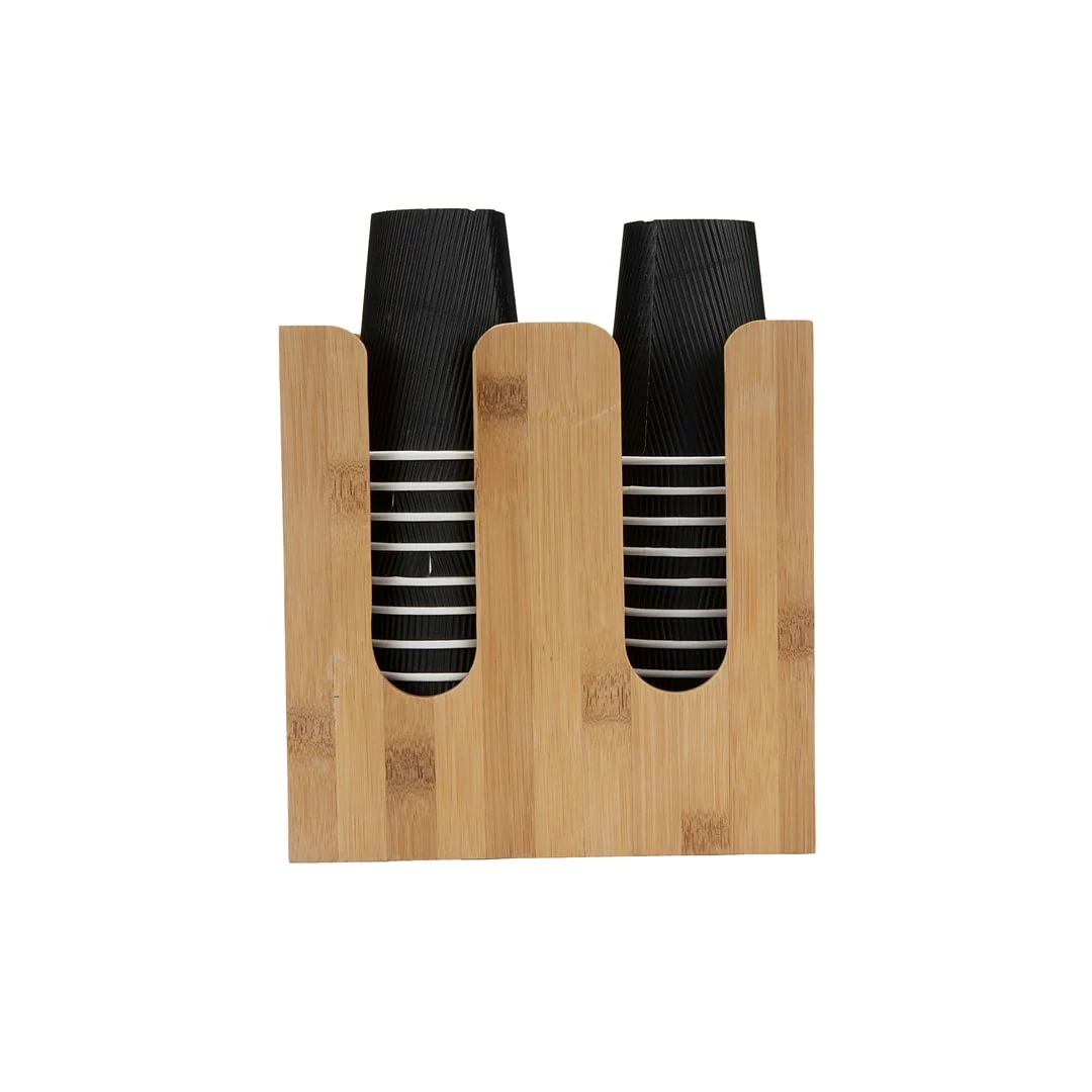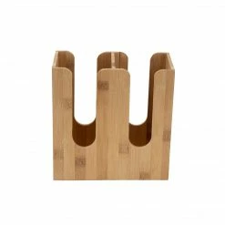 This brown cup holder is constructed of durable and sturdy bamboo that is sure to last for years of usage