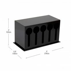 Organize Your Utensils Elegant and sleek, the neutral black design and compact look of this cutlery holder will blend effortlessly into any decor when used in a restaurant, coffee shop, or diner environment. Save space in your breakroom, pantry, or cafe with this sleek, compact design. Not only does the tabletop cutlery holder help reduce counter clutter in your kitchen, but it’s also perfect for restaurants and diners, buffets, breakrooms, coffee stations, holiday get-togethers, and more. Do you need to store wrapped cutlery instead of unwrapped pieces? You can organize and sort your plasticware vertically instead of horizontally for a tidy way to store utensils. The plasticware sorter is wide enough to accommodate wrapped or unwrapped utensils, making it even more versatile. This utensil stand is lightweight and perfect to stick in your car for temporary cutlery dispensing, making it great for campouts, reunions, sports events, and picnics. A simple wipe down of the lightweight, sturdy plastic is all it takes to clean up!