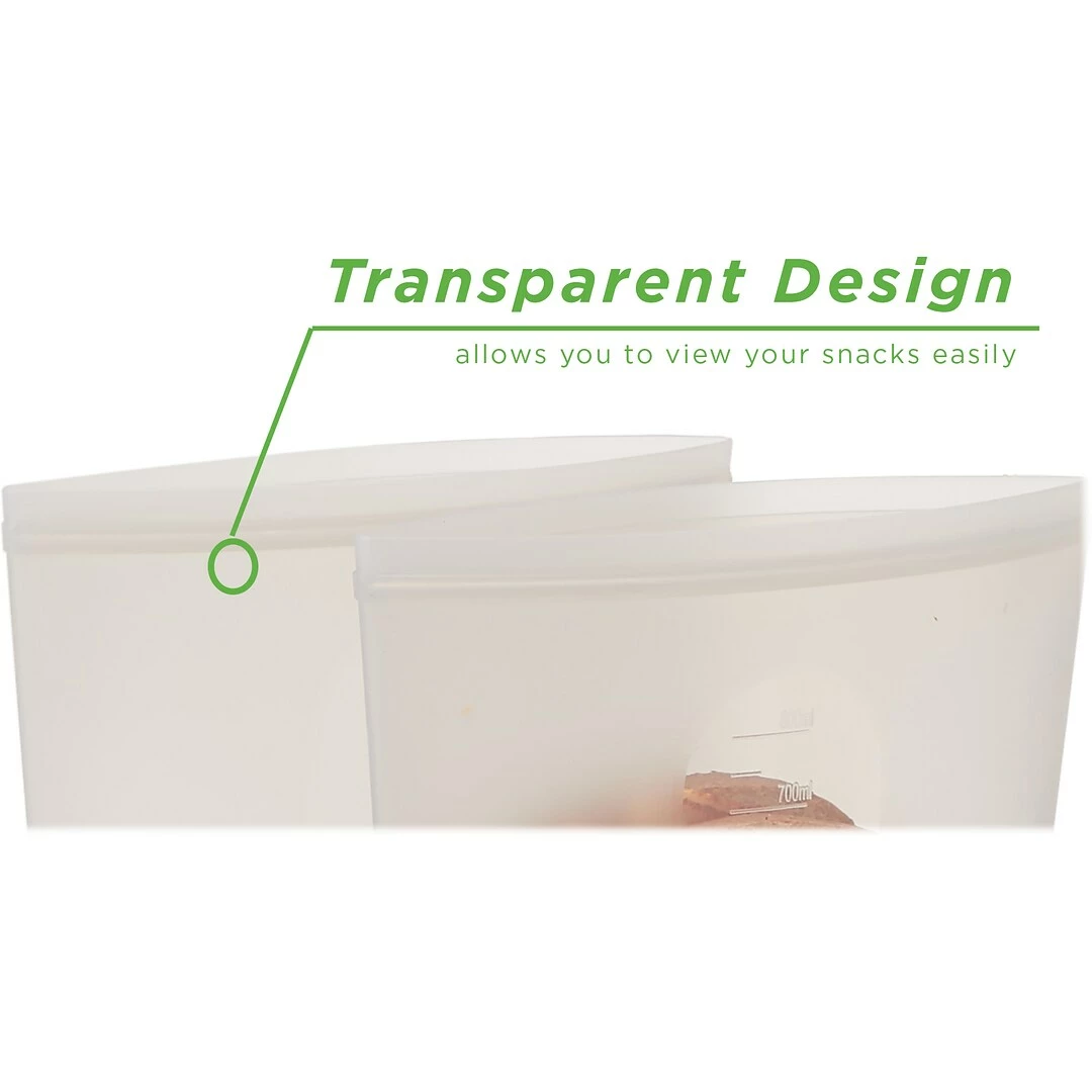 Silicone food storage bag seals tightly, ensuring that your food will stay fresh and no leaks will occur; comes in clear color