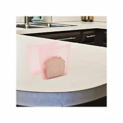 Silicone food storage bag seals tightly, ensuring that your food will stay fresh and no leaks will occur; comes in transparent pink
