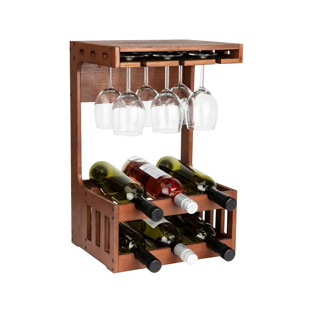 Level up your wine service at home with this classic freestanding wine holder and glass rack from Mind Reader. This wine and glass rack holds up to six standard-size bottles of red or white wine and up to six stemmed glasses at a time. The natural wood finish and elegant design make a warm accent to any home, and the compact frame helps add stability and balance. This freestanding unit requires no complicated mounting or installation and can simply be placed wherever you need to use it.