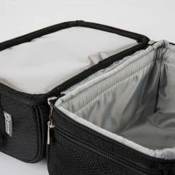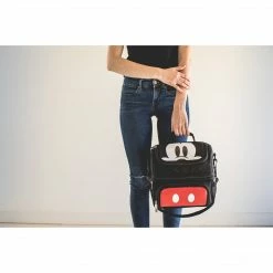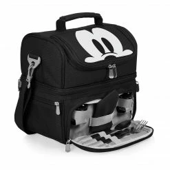 Enjoy your lunch like an original Mouseketeer. Get an insulated lunch bag with service for one. This Disney-themed lunch box has separate hot and cold compartments with an 8-can capacity, including napkin, flatware, and salt and pepper shakers.