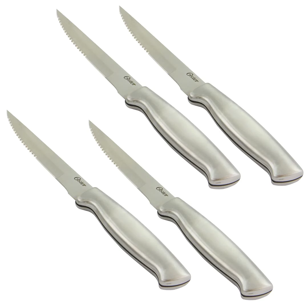 Complete your knife set with these Oster Baldwyn Steak Knives. They are precision-stamped for durability through the full length of the knife. This Oster cutlery set also features high-quality, stain and rust-resistant stainless steel blades. Oster Baldwyn Stainless Steel 4.5 In. Steak Knife (Set of 4)