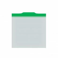 Clear bags with green easy-open tab are made of durable, long-lasting plastic