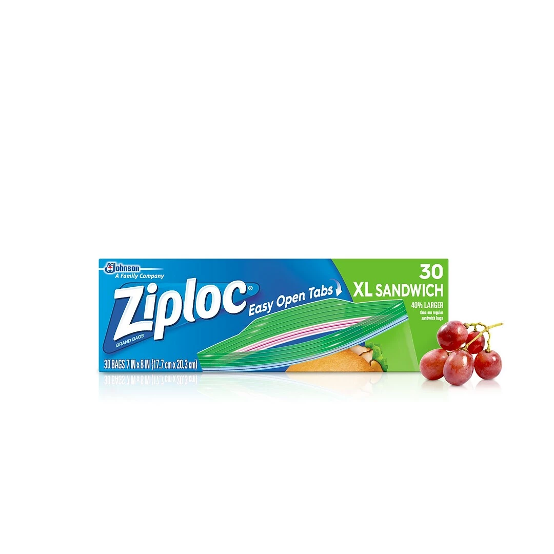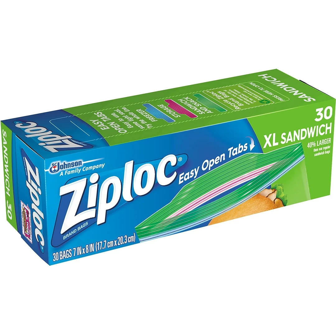 Whether you’ve got a big double-decker sandwich or a skinny PB&J, these Ziploc sandwich bags are perfect for packing up the sandwiches you love. Use these handy bags to pack lunch for yourself and your family or just to keep snacks and sandwiches accessible and fresh. Quickly retrieve and eat stored food or snacks with the easy-open tab of these clear Ziploc sandwich bags. The package contains 30 XL sandwich bags.