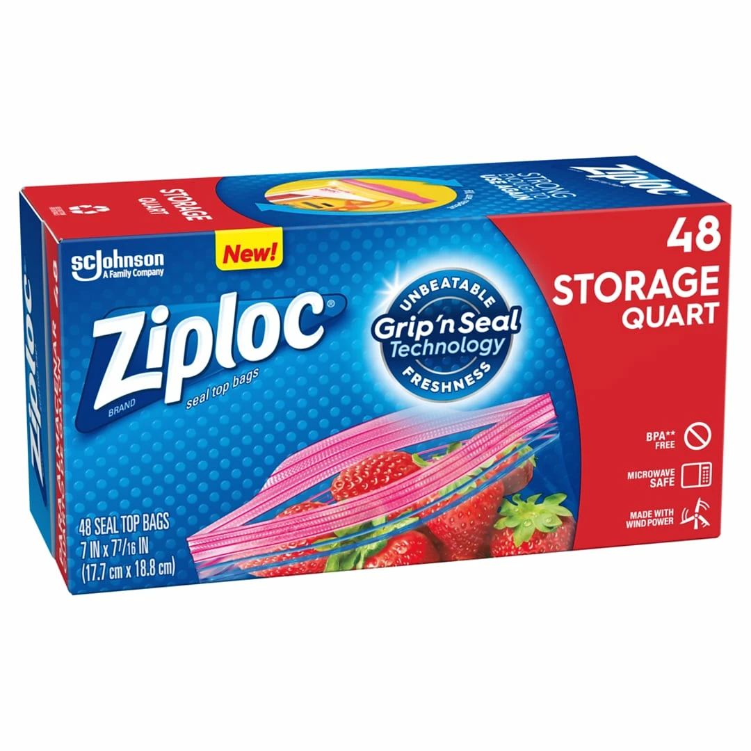 | # of Bags per Box : 48 | Bag Capacity : Quart | Bag Seal Type : Double Zipper | Brand : Ziploc |